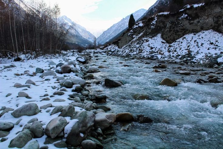 Snow covers the mountains, creating spectacular winter scenery.